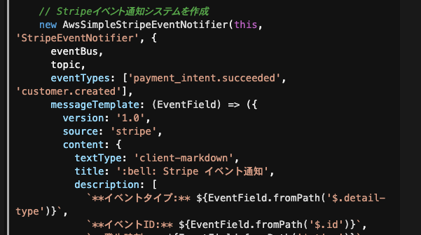 また、EventBridge と SNS のみを利用することから、CDKスタックの依存関係管理さえ定期的に行えばインフラの保守工数はほとんど必要ありません。Stripe ワークフローよりはコードが登場しますが、あくまで構成管理のみの用途ですので、こちらもノーコードツールに近しいと言えるでしょう。