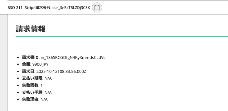 決済システムを運用していると、決済エラーや課金失敗をいち早く把握して対応することが、事業継続において重要な課題となります。サブスクリプションビジネスであればなおさらで、決済エラーを見落としてしまうと売上機会の損失に直結してしまうでしょう。そのため、適切な通知・管理体制の構築は欠かせません。